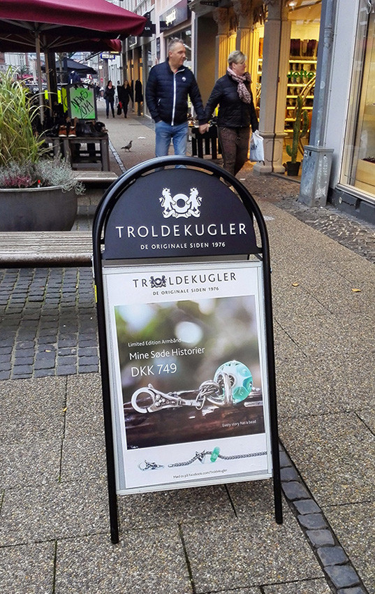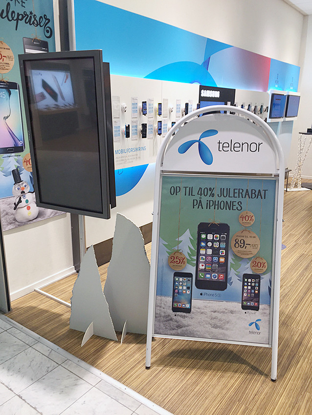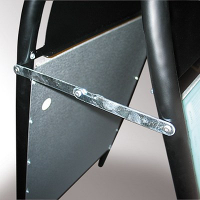 Kundenstopper mit Logotop. Aus 25 mm Stahlrohr, phosphatiert under polyesterlackiert produziert. Rostfreie und unlackierte Alu-Zink Rückplatten. Entspiegelten APET Frontplatten mit Magnet.